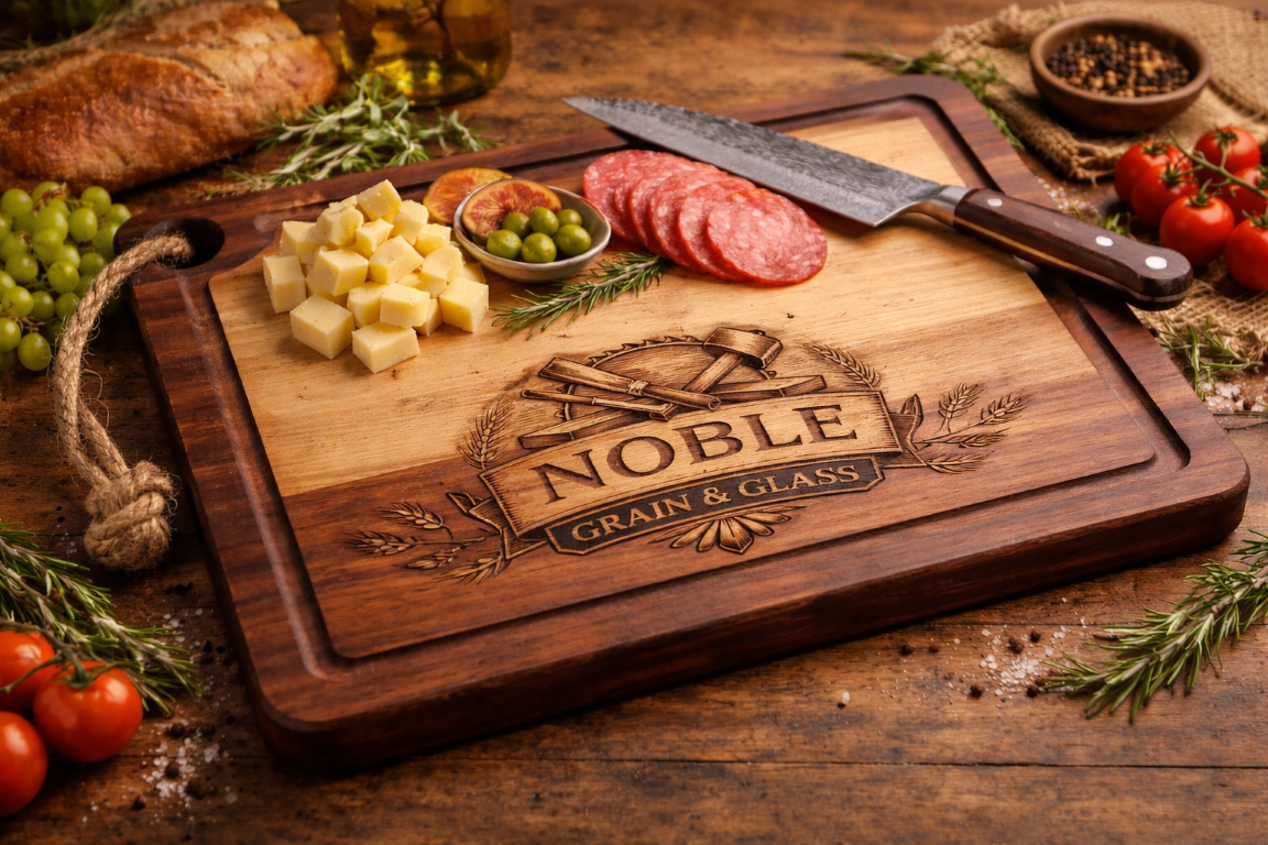 Built for the Moments That Matter. Crafted for gathering—where good food, good company, and timeless craftsmanship come together around the table. Premium hardwood construction with smooth, food-safe finish. Generous surface for prep or serving. Optional engraving available. Balanced weight for stability and durability. Round board also available.